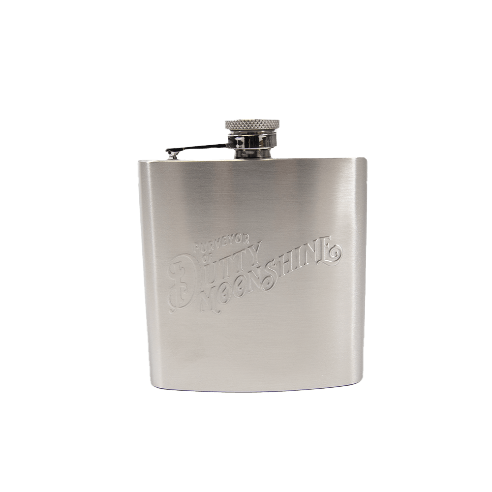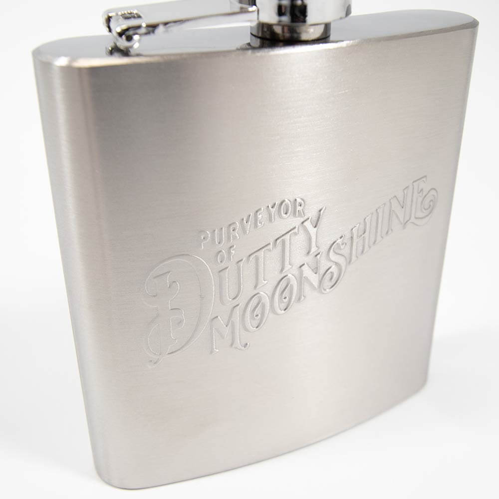 Custom Stainless Steel Hip Flask with Purveyor Design Engraving.